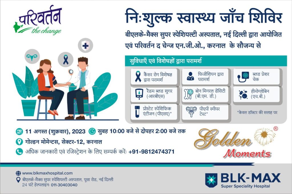 Parivartan – The Change, in association with BLK-MAX Super Speciality Hospital, New Delhi, and supported by Golden Moments, hosted a comprehensive, life-saving cancer screening camp for the community — because early detection is the first step toward survival.