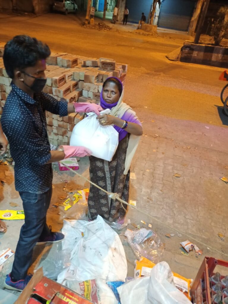 – Partnered with community kitchens to distribute 200–250 cooked meals daily to stranded industrial workers.